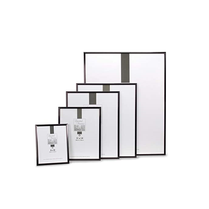 11x14 Portrait Picture Frame in Black. Size: Overall: 12.75x15.75x.5 inches. Sized for 11x14 photo. Put the story of you on display in this portrait picture frame. Its black molding and black-filleted white mat lovingly highlight your contents for a chic design, while its standard photography sizing easily accommodates 8 x 10 photos with the mat and 11 x 14 photos without it. Pre-attached hardware makes it a hassle-free experience to hang this portrait picture frame vertically or horizontally.