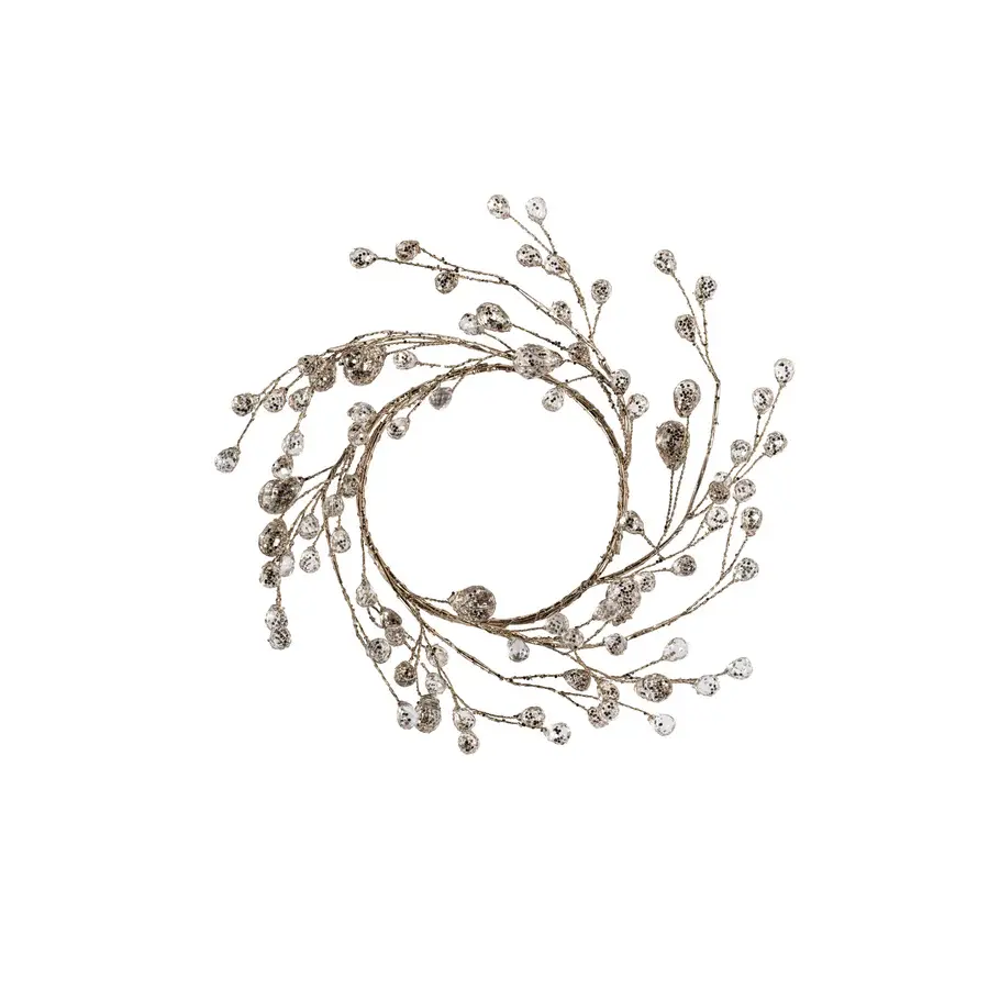 7" Beaded Glass Berry Wreath - Clear and Gold - 7 in CH-7597