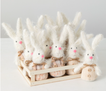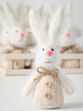 Know someone who has gone berserk for bunnies in their decor? Well, this makes the perfect addition to any collection. Soft, plush, and ready to perch upon any setting, this decorative set is dressed to impress all season long! These little guys are perfect for Easter, Christmas or even decorating a child's room!