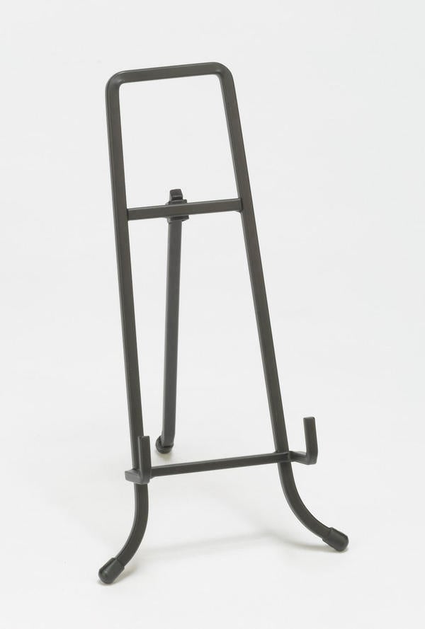 Display any item with the simple 9" Black Straight Edge Easel. Made of black square metal wires, its "A" shape makes it a sturdy piece.