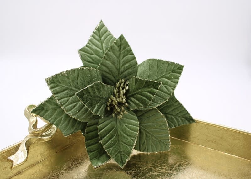 11x18" Green Velvet Glittered Poinsettia Stem FLX6008