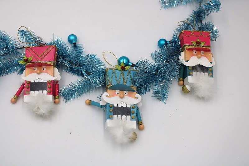 Metal Nutcracker Ornament Pink/Teal CM1017A