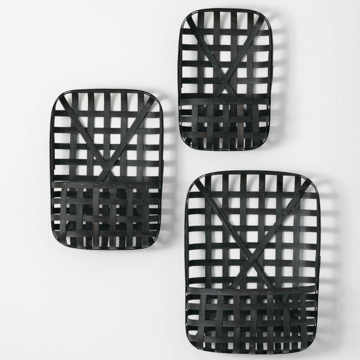 Made of bamboo, a treelike tropical plant, these dark gray wall baskets will really make a statement.