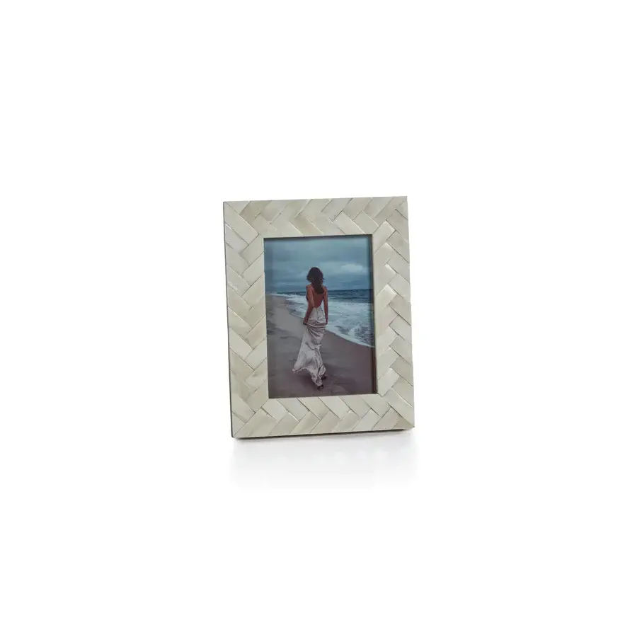 Bone Braided Photo Frame - White - 5x7 IN-7727