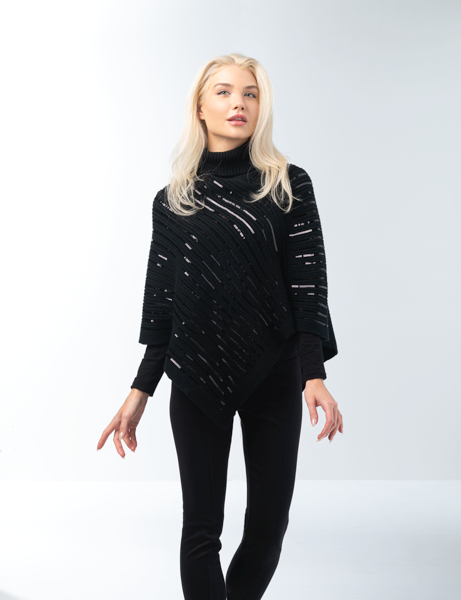 Cowl Neck Sequin Poncho BLACK FPNCH201B