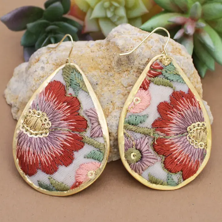Earring-Autumn Bloom Embroidered Teardrop E3926