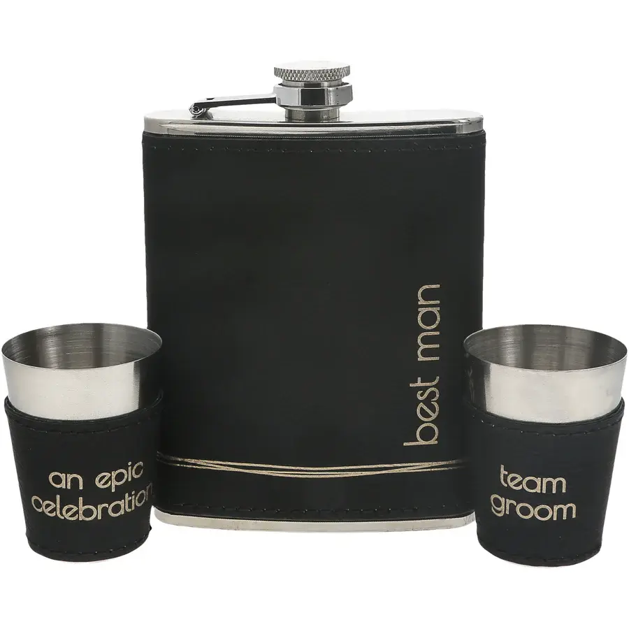 Best Man One 8 oz Flask & Two 1.5 oz Shot Glasses 37228