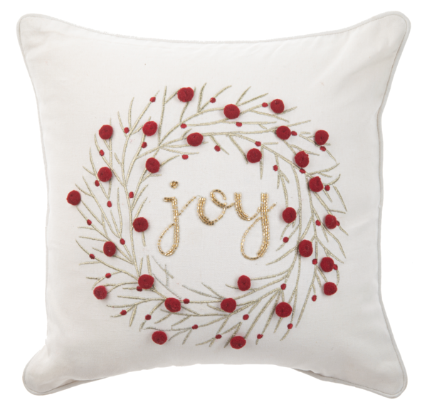 Embroidered Wreath Throw Pillow -Joy MX193952