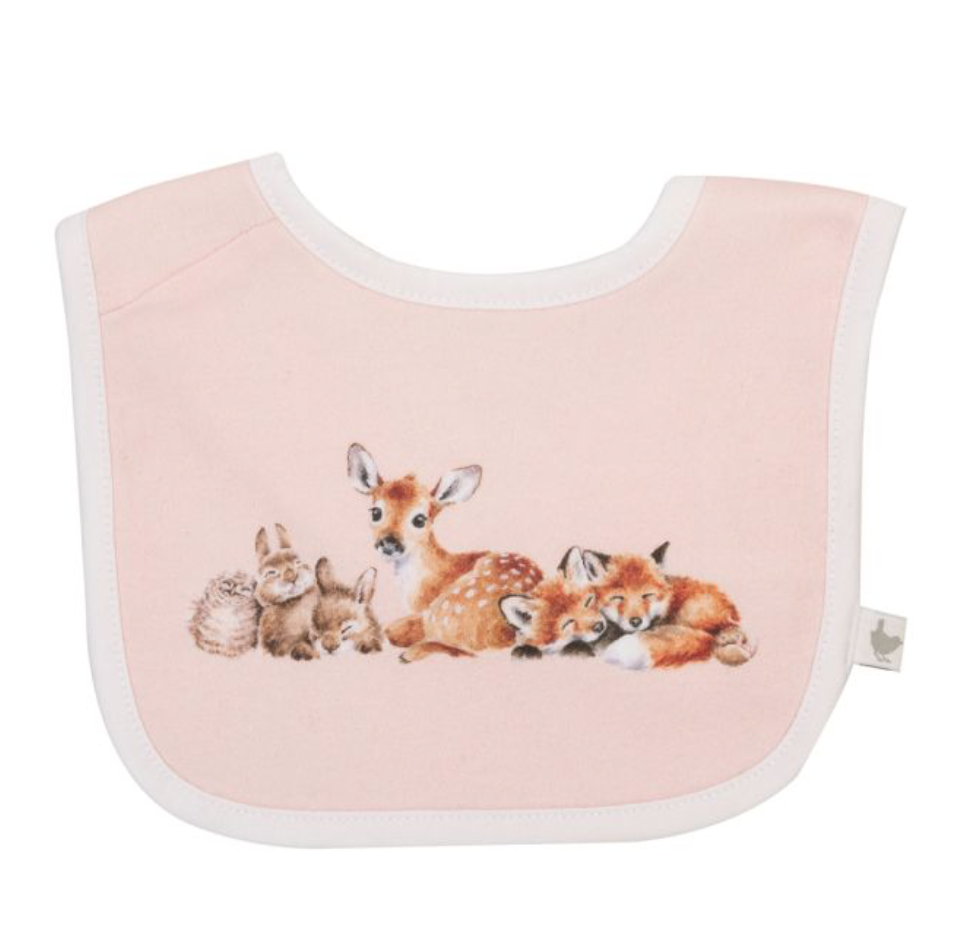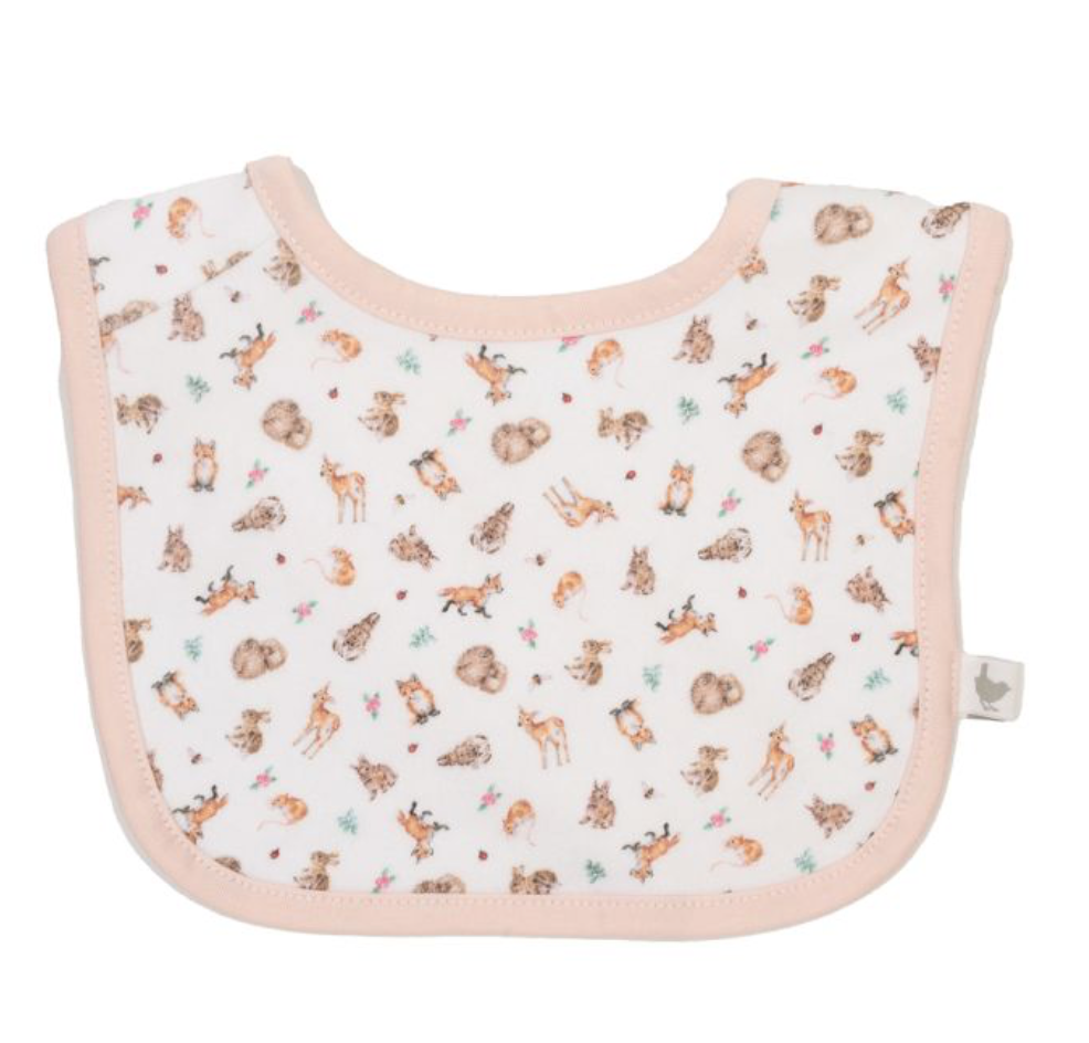 This gorgeous bib gift set includes two bibs made from 100% organic cotton, featuring our lovely 'Little Forest' design. One bib showcases a placement print on a light pink background, while the other features an all-over pattern on a white background with pink trim, both finished with a popper closure. Practical and beautiful, this set makes a perfect gift for a newborn or expecting parents. Dimensions: 7.9 x 8 inches. Packaged on a card hanger made from sustainably sourced board from responsibly managed forests.