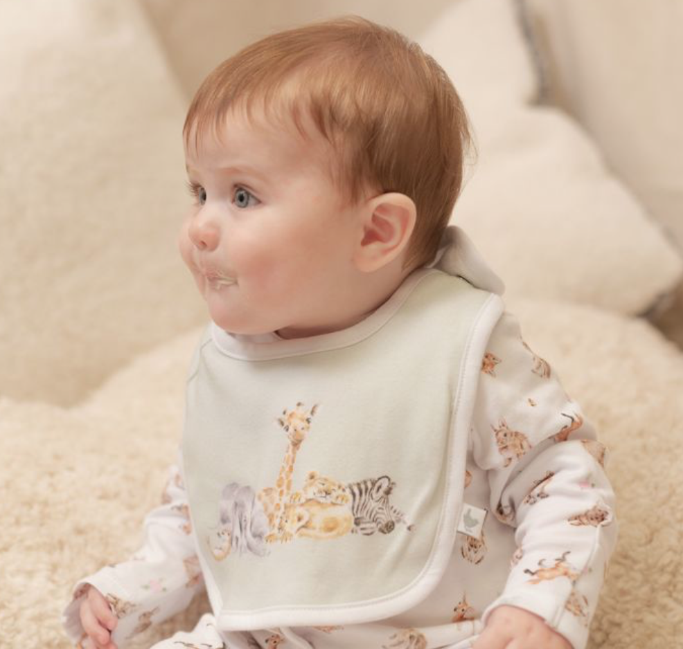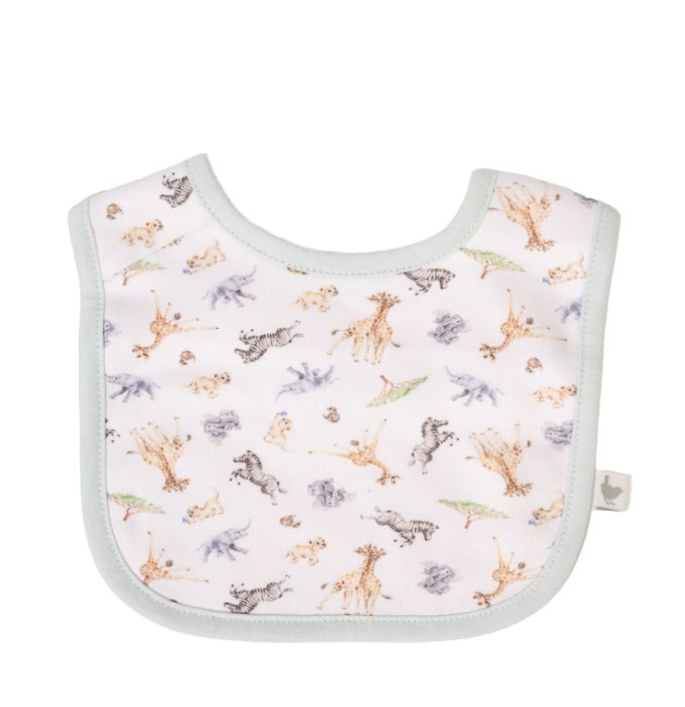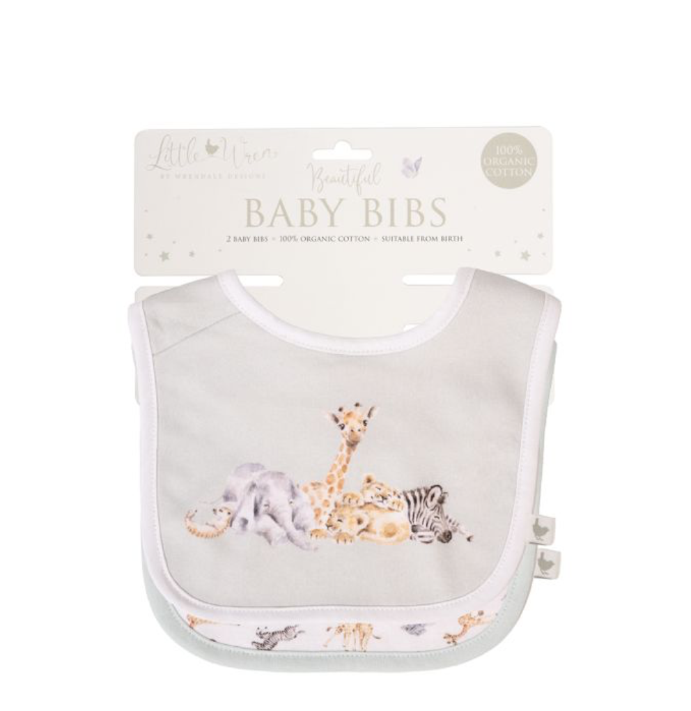 This gorgeous bib gift set includes two bibs made from 100% organic cotton, featuring our lovely 'Little Savannah' design.