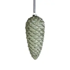 Pine Cone Glass Ornament with Glitter -Green- Large CH-6429
