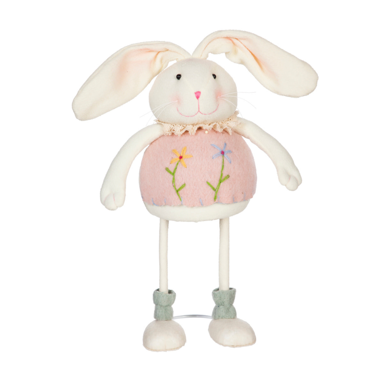 - One of our Fabric Standing Bunnies will surely bring smiles to all your spring guests. These two plush friends are dressed in pastel floral clothing. The inner spring allows the figurines to bobble and come to life. Display the pair on a tabletop, shelf or mantel for extra Easter fun!