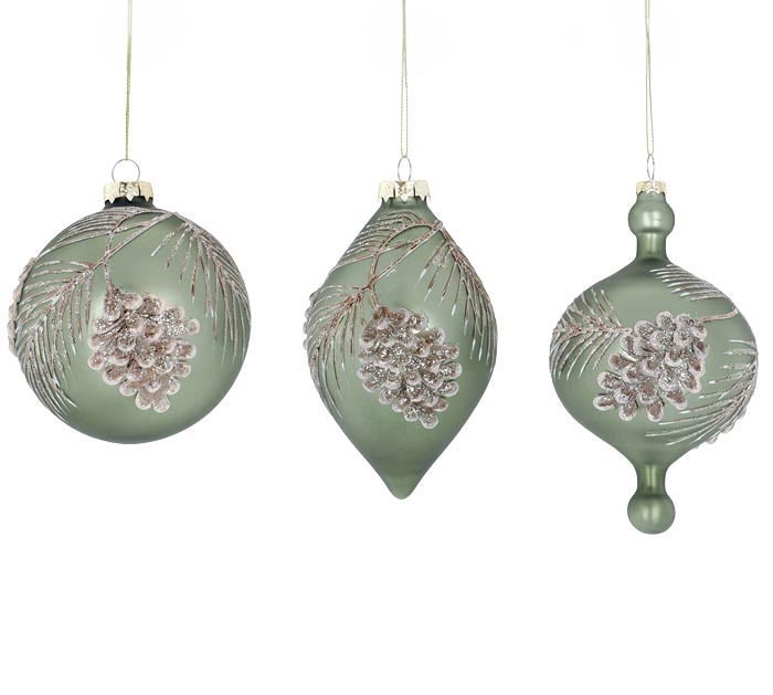 GLASS ORNAMENT GREEN PINECONE DESIGN 9748516